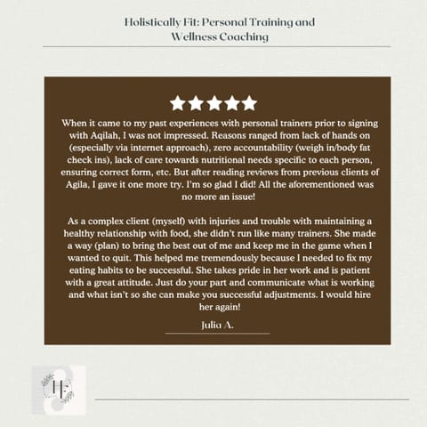 Hey there! I’m Aqilah, your dedicated fitness and wellness coach. From an early age, I’ve been passionate about fitness and nutrition. My journey has included overcoming challenges like injuries and unhealthy relationships with food, which ultimately led me to pursue a career in helping others achieve their goals.